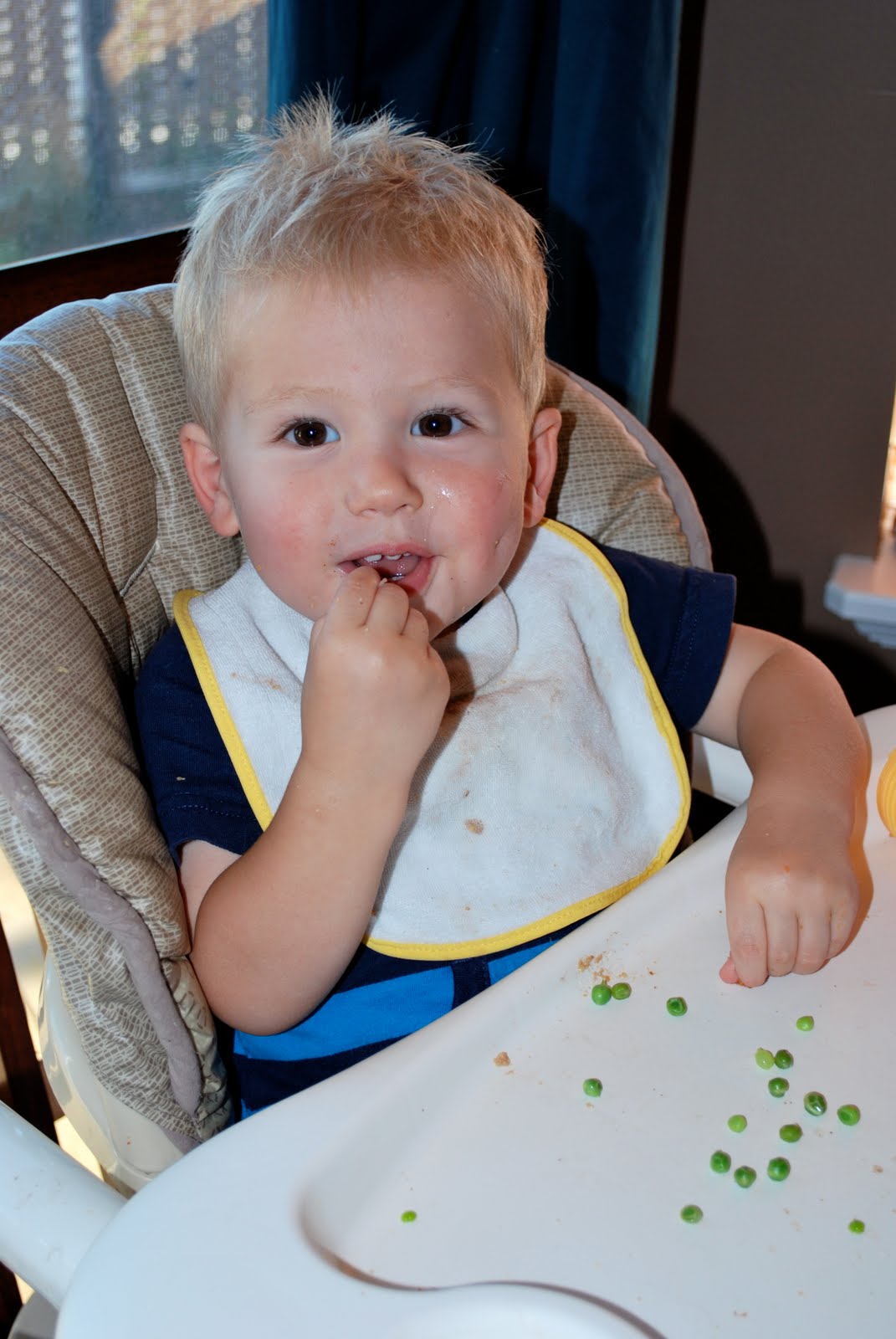 For the first time ever, the Shenk Family is growing their own food. Woo hoo! Unfortunately, we’re not very good at it… yet! (Here’s hoping that experience will be the best teacher next spring.) We had a small amount of success growing peas and we were able to harvest about 3 spoonfuls. Yes, that’s right, 3 whole spoonfuls! Being the darling of our little family, James got most of that and here he is eating them up with a big smile on his face because they were delicious!!